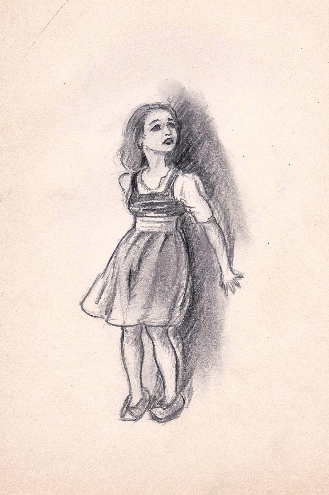![]() ?, scared little girl, pencil on paper, 9 x 12" |