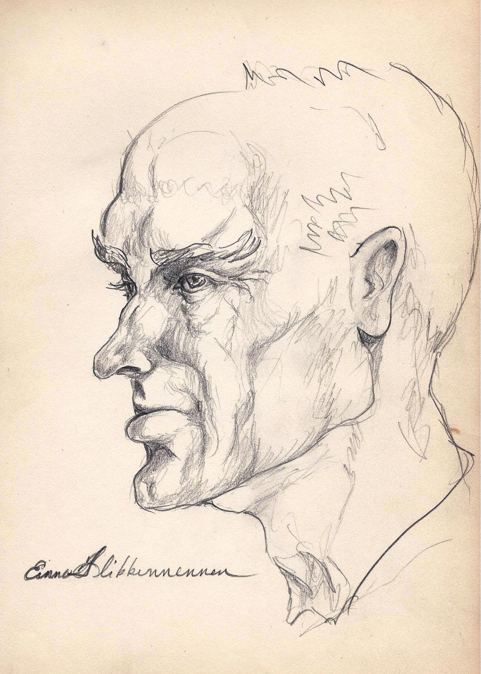 ![]() ~1941, self portrait, pencil on paper, 7 x 10.5" |