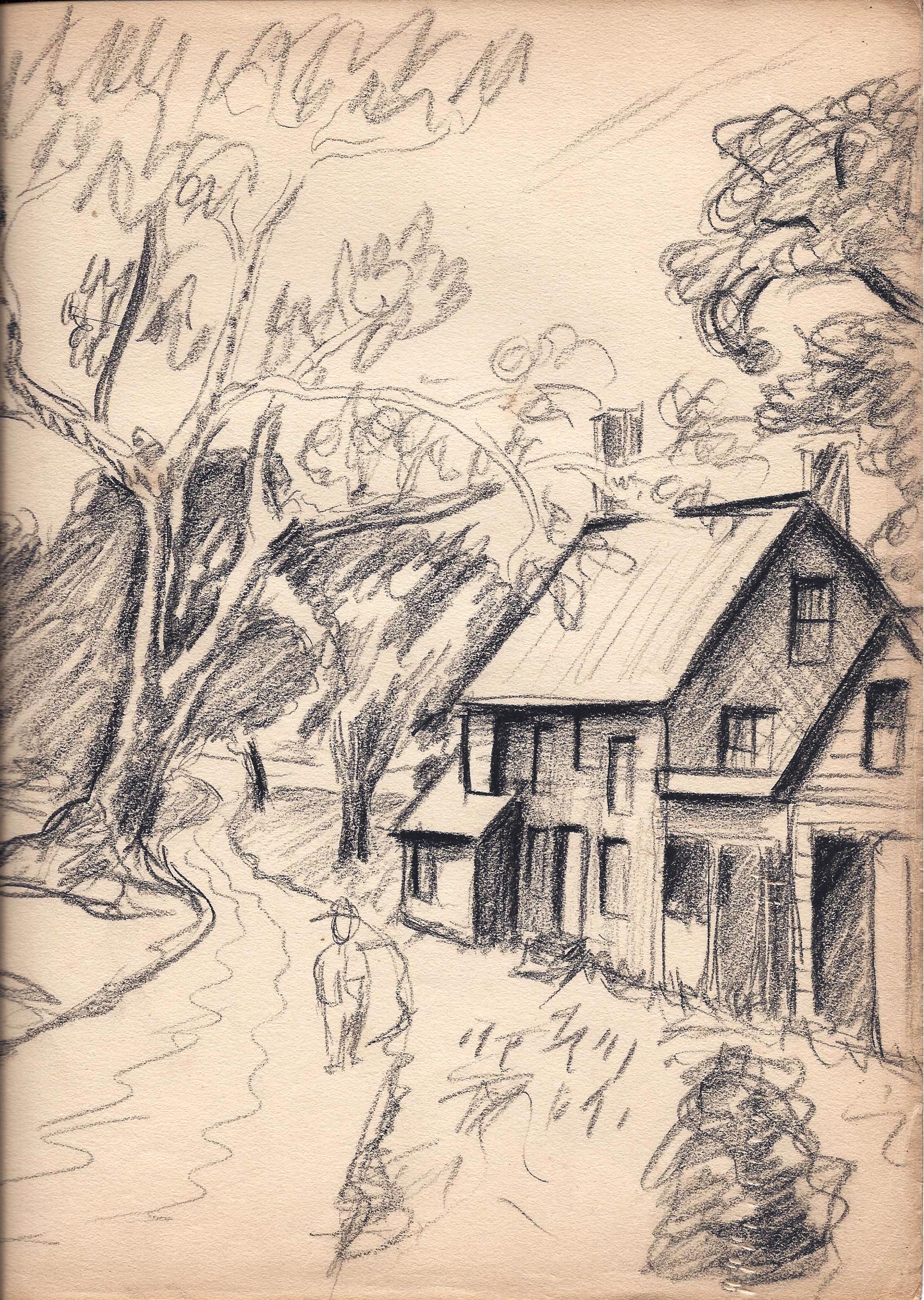 ![]() ?, sketch for painting, pencil on paper, 9 x 12" |