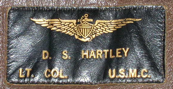 10/24/44-11/30/44 - Gold Star in lieu of a second Distinguished Flying Cross: "For heroism and extraordinary achievement in aerial flight as Pilot of a Fighter Plane in Marine Fighter Squadron Two Hundred Twenty-Five during operations against enemy Japanese forces in the Marianas Islands Area, from 24 October to 30 November 1944. Completing his fortieth mission during this period, Second Lieutenant Hartley carried out hazardous observation flights and launched vigorous bombing and strafing attacks against hostile installations on Rota and Pagan, thereby contributing materially to the infliction of damage on the enemy. By his skilled airmanship and courageous devotion to duty in the face of grave hazards, Captain Hartley upheld the highest traditions of the United States Naval Service."