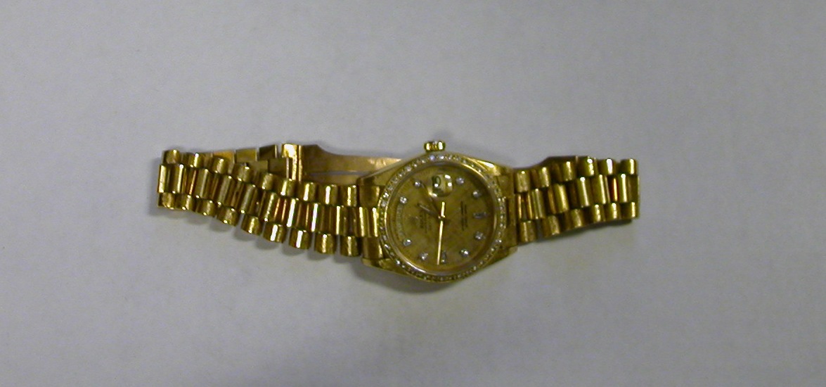 | 18k gold Rolex daydate diamond numbers & bezel, box |