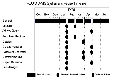 Each of the reuse scenarios was discussed at the Systematic Reuse Workshop in January, 1994. Subsequently, the reuse scenarios were discussed in design workshops. Figure 2 is provided as an aid to visualizing the timing of the activities from an overall perspective.