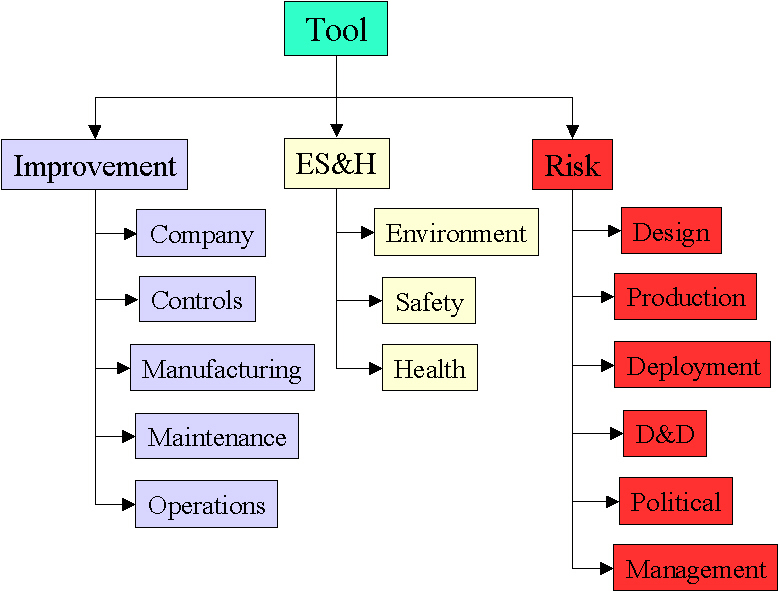 Technologies Employed: The Idaho National Engineering & Environmental Laboratory (INEEL) had created a technology assessment tool that provided the needed evaluation technique. Figure 1 illustrates the concept of the tree of nodes and questions needing to be answered to evaluate improvement, ES&H, and risk.